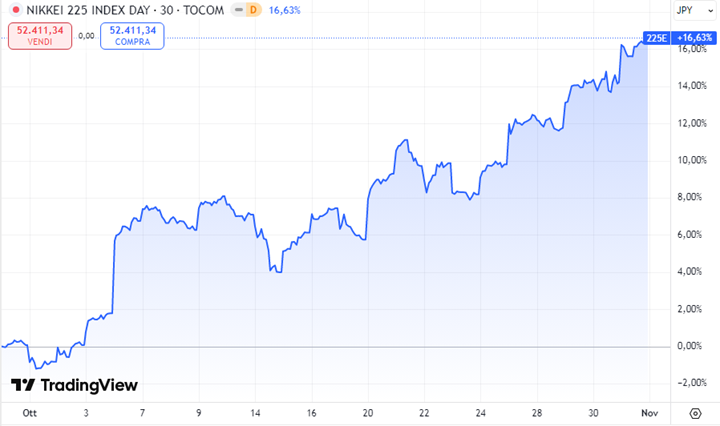 📈 Ottobre 2025 ha segnato un mese storico per i mercati asiatici: l’indice Nikkei 225 giapponese è salito del 16,6%, il miglior risultato mensile degli ultimi 31 anni. Un balzo alimentato dalla forza dei titoli tecnologici e dall’ottimismo sulla nuova fase economica del Giappone. Ma cosa significa davvero questo rally e, soprattutto, cosa può insegnare agli investitori europei?